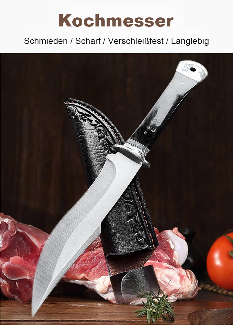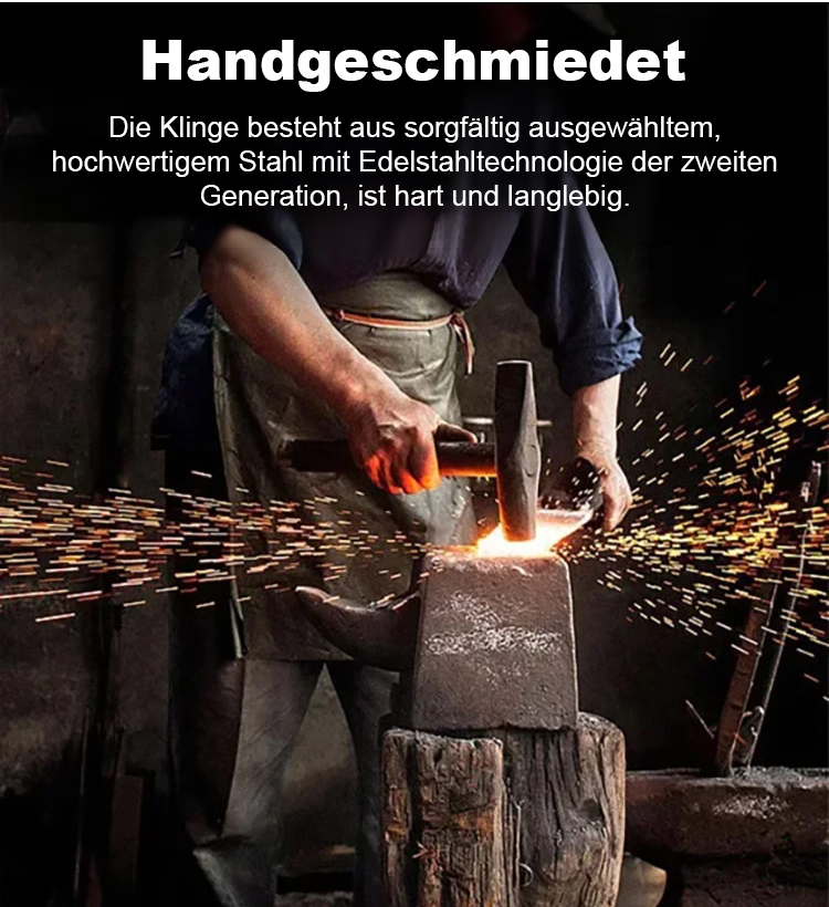 Nach hundertjähriger Schmiedekunst aus Militärstahl geschmiedet, für eine Klinge, die mühelos Knochen zerteilt und niemals stumpf wird.
