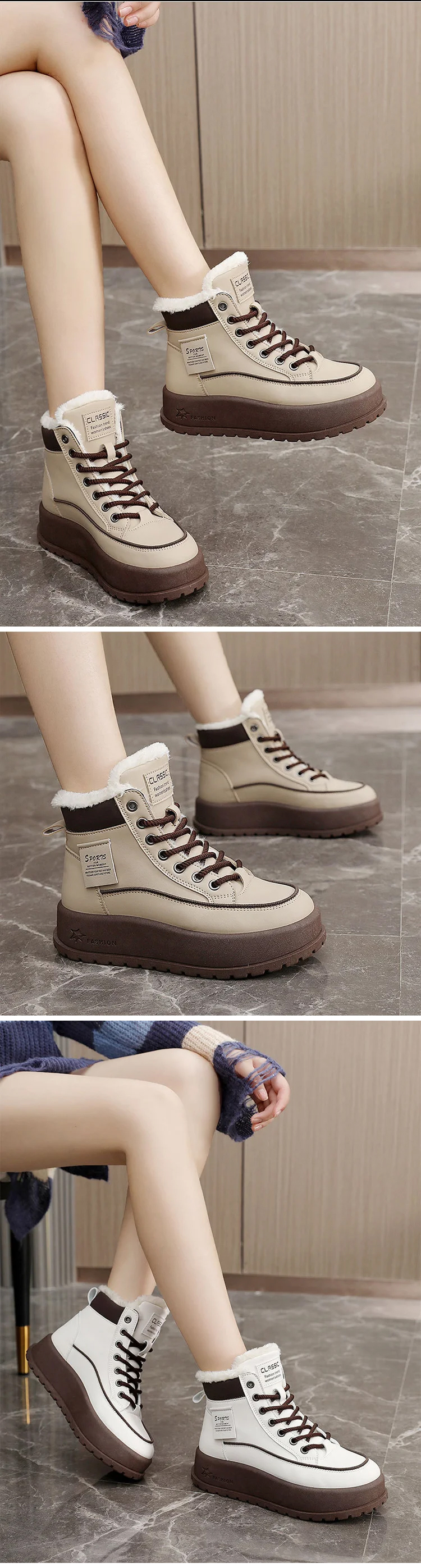 💗🎊Damenstiefel mit dicker Sohle, Fleecefutter und hohem Schaft.