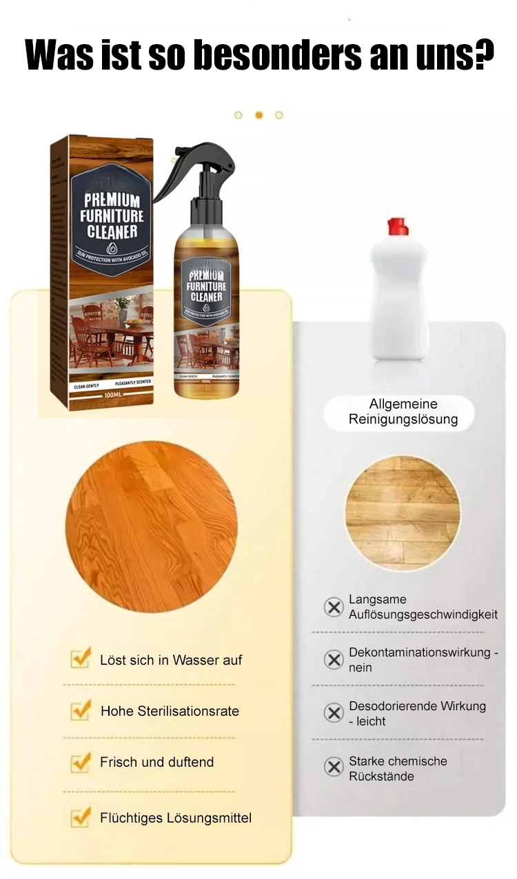 Reinigt sekundenschnell zu neuem Glanz und bildet einen Schutzfilm gegen Staub – 100% natürlich, TÜV-geprüft und sicher für die ganze Familie