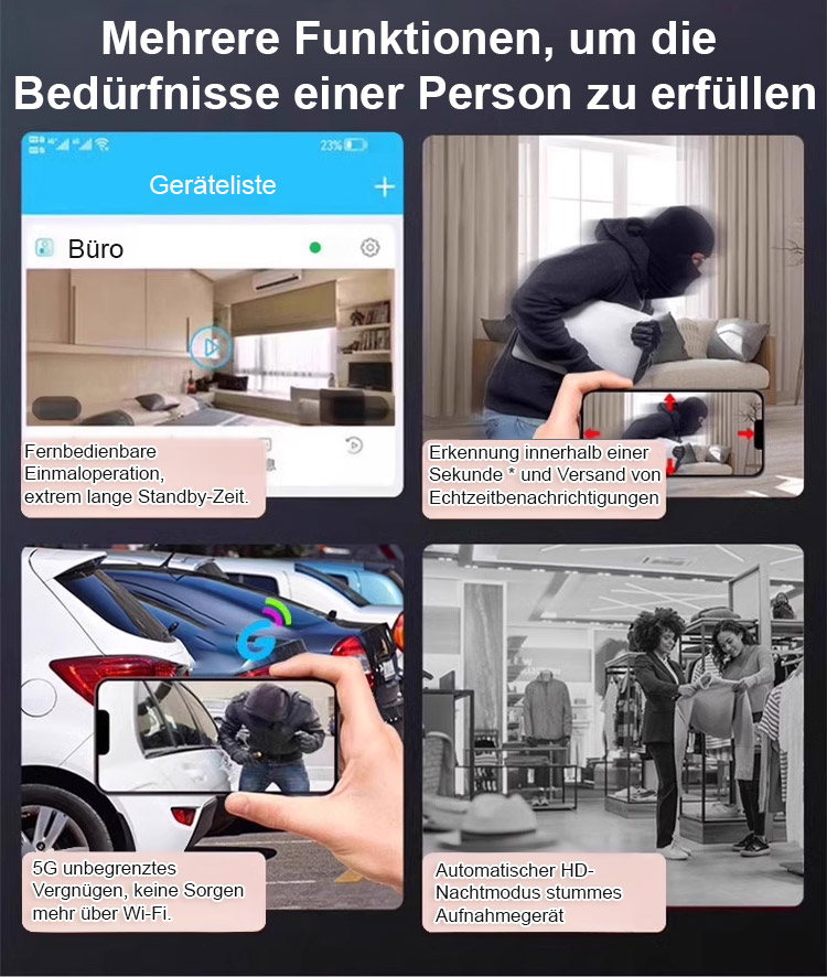 🏆💯 Mini-Überwachungskamera Ohne Bohren & Kabel: Sofort-Sicherheit für Haus, Auto & Büro