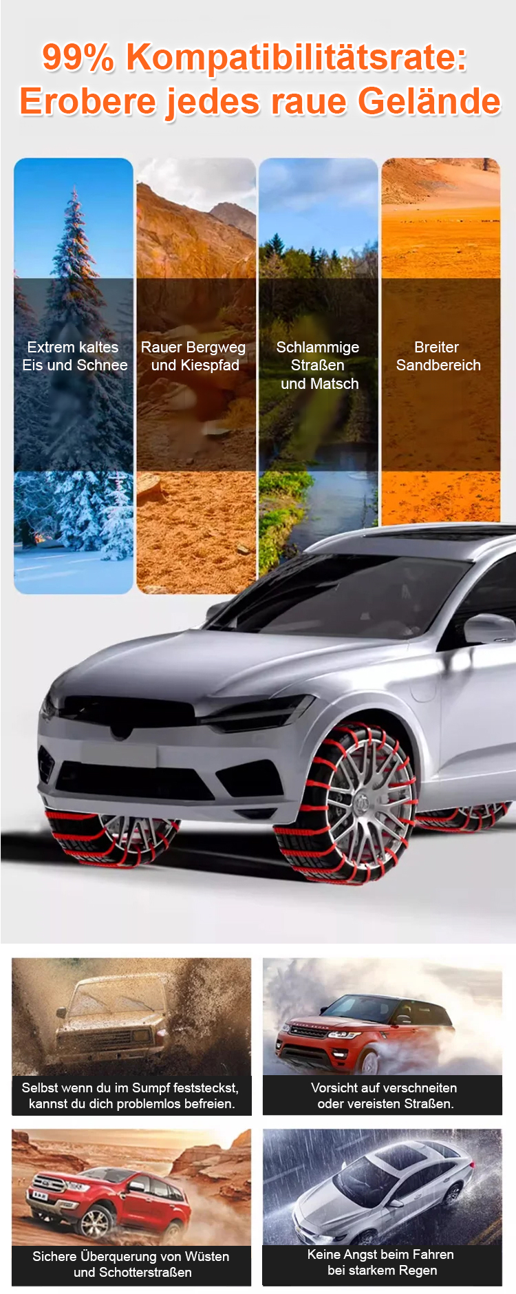 🚗🏆 High-Performance Schneeketten | In 3 Min. montiert |200% mehr Grip & Felgenschutz | Universelle Schneeketten für Kraftfahrzeuge